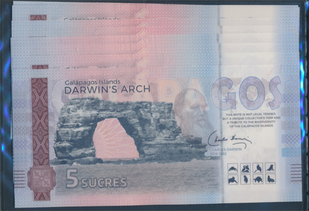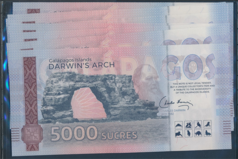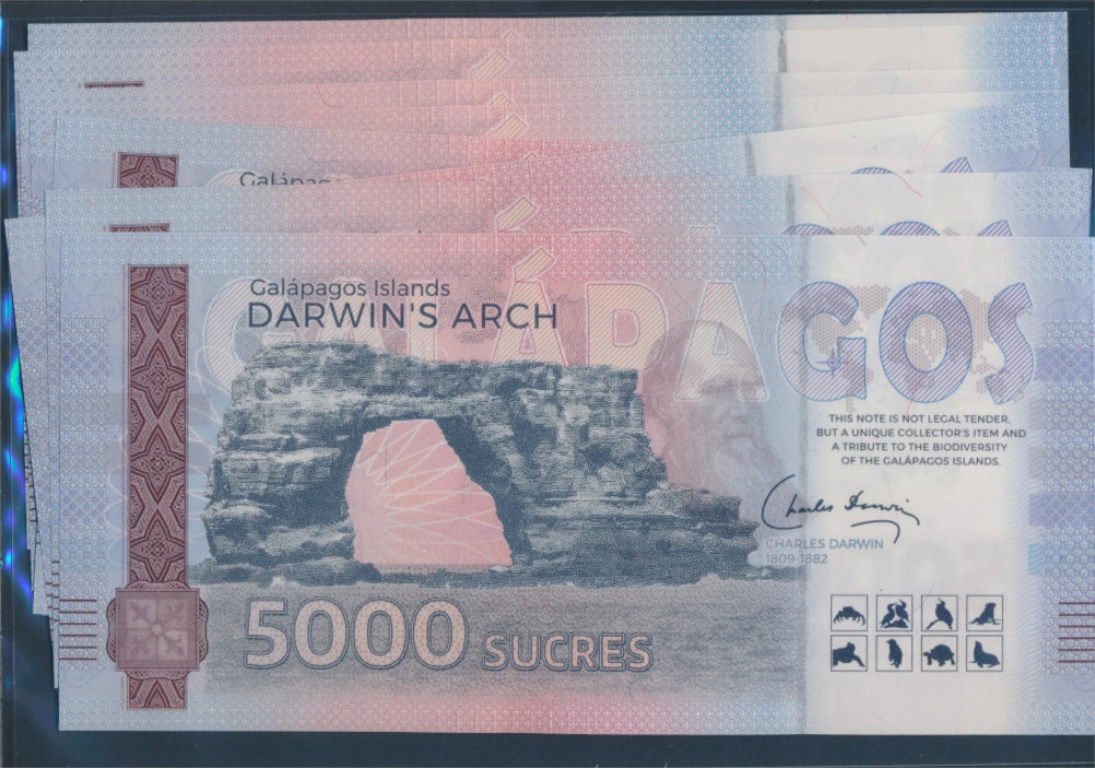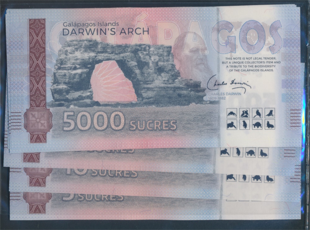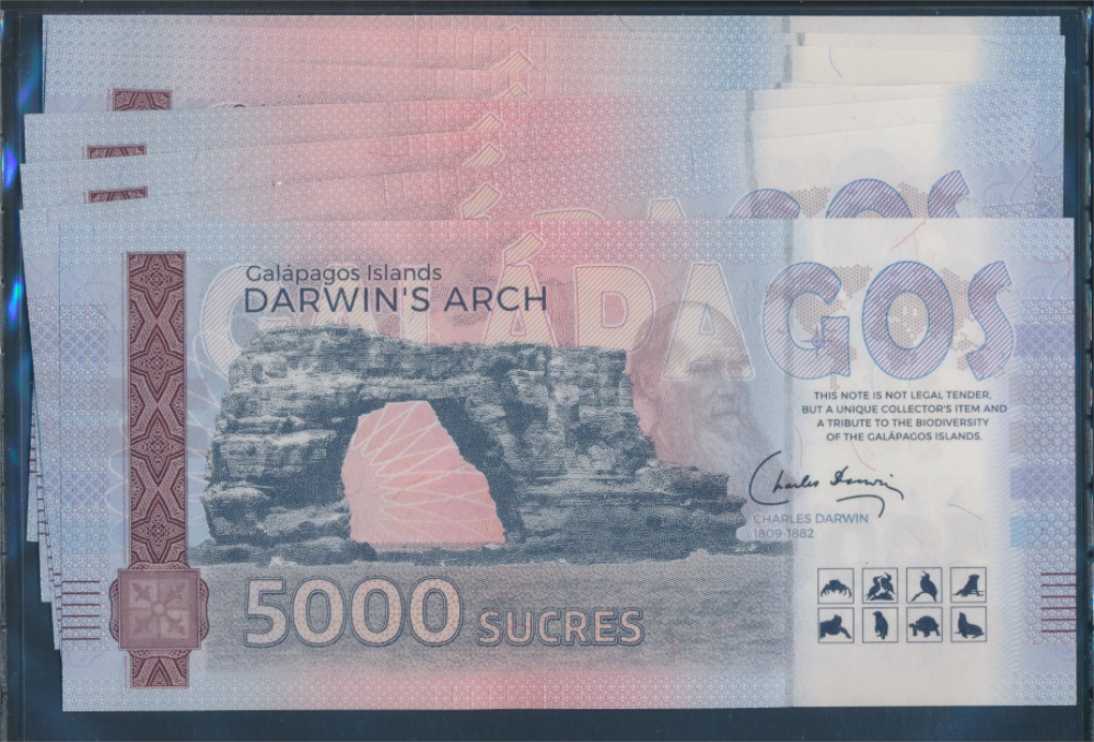 Ecuador-Galapagosinseln 5 Sucres until 5.000 Sucres Souvenirschein Galapagosinseln, uncirculated 2025 Galapagosinseln - 8er set