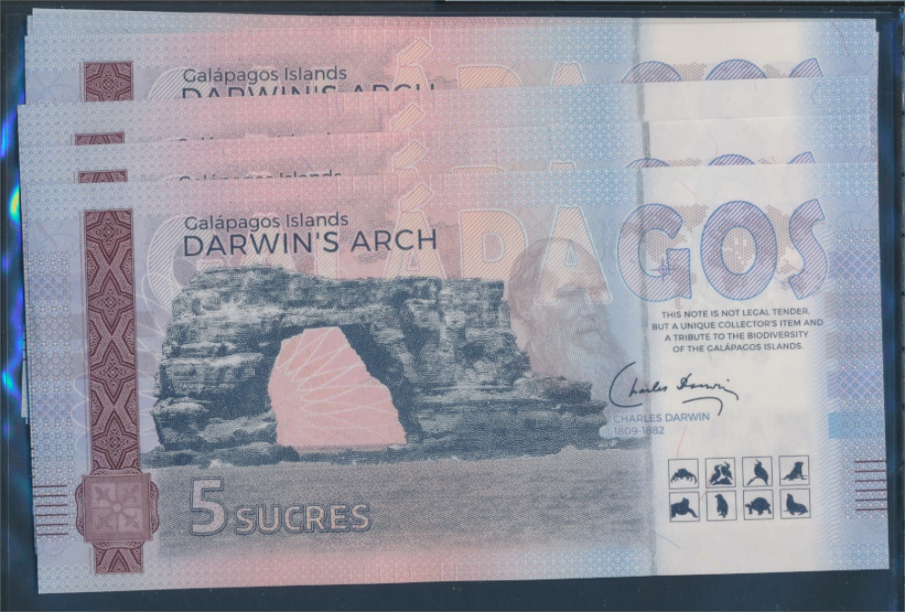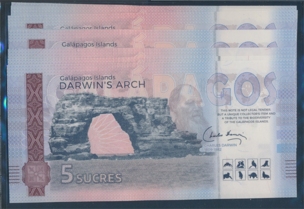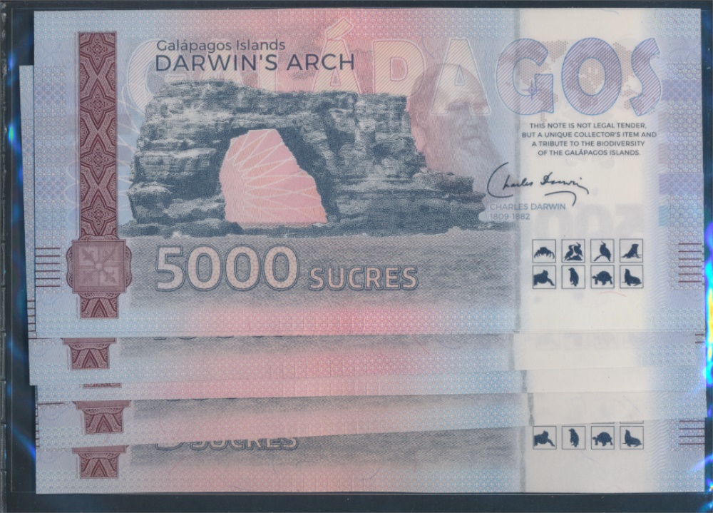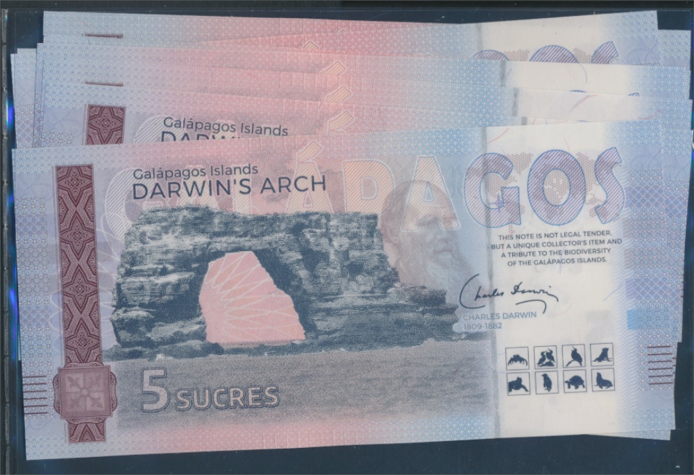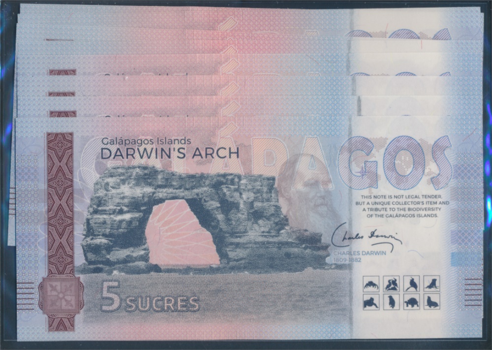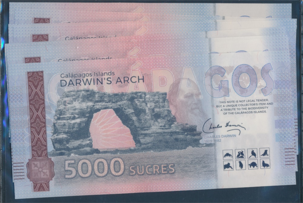 Ecuador-Galapagosinseln 5 Sucres until 5.000 Sucres Souvenirschein Galapagosinseln, uncirculated 2025 Galapagosinseln - 8er set